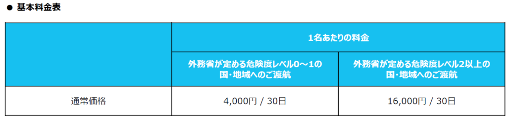 ※3 契約期間は、ご出発日1週間前からご帰国日の1週間後までとなります。渡航期間が1か月未満の場合でも、1か月分の料金をご請求いたします。